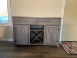 HOMCOM Farmhouse Coffee Bar Cabinet, Sideboard Buffet Cabinet Wine Cabinet with Drawers, Barn Style Doors, Wine Rack, Distressed Oak Brown
