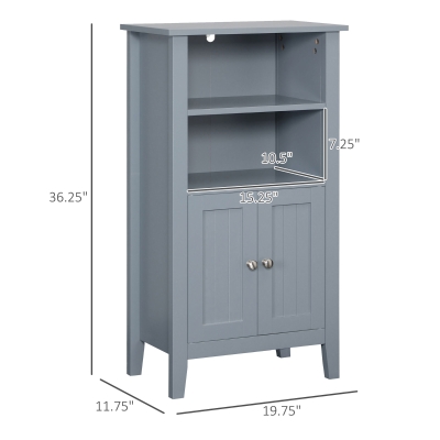kleankin Bathroom Cabinet Organizer with 2-Tier Open Shelves, Double Door Enclosed Storage and Elevated Base, Dark Gray