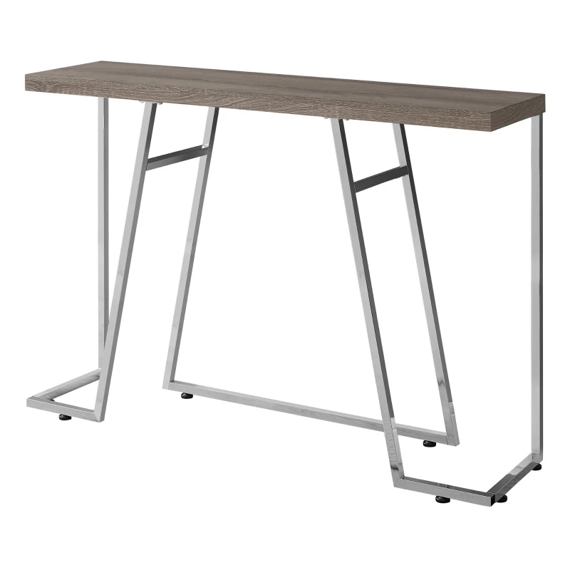 Monarch 48" Contemporary Thick Panel Top Chrome Metal Legs Accent Hall Console Table - Dark Taupe Wood Grain-Look Finish