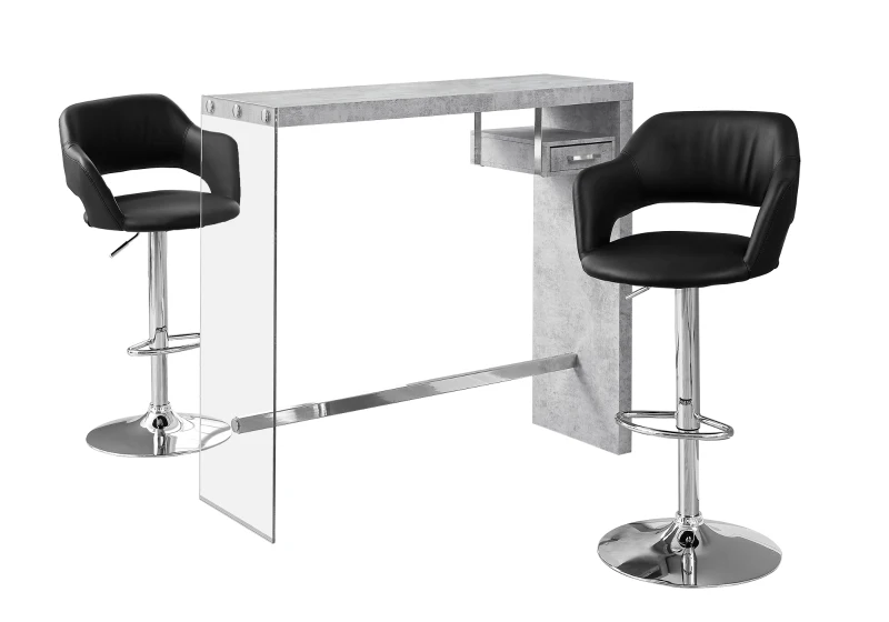 Monarch 48" Modern Cement-Look Top Tempered Glass Sides Home Bar Table with Floating Storage Drawer - Grey Tones Finish