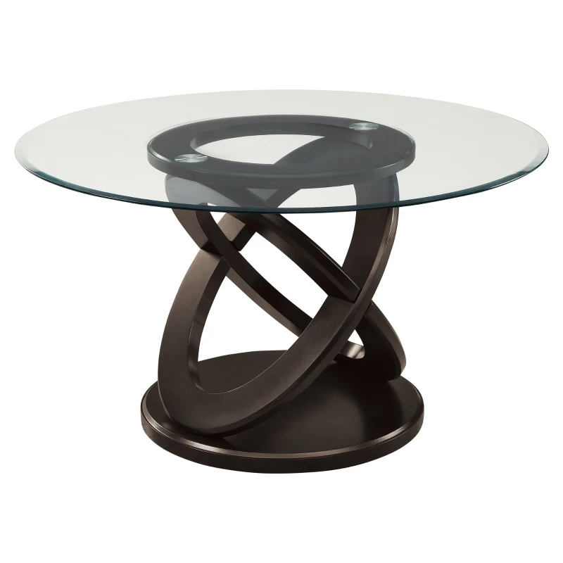 Monarch 48" Round Tempred Glass Top Contemporary Wooden Base Dining Table - Espresso Brown Finish