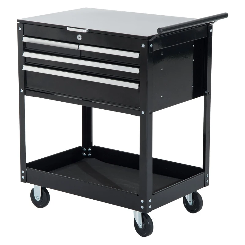 Open Box HomCom 4-Drawer Top Storage Rolling Tool Chest Cart - Black