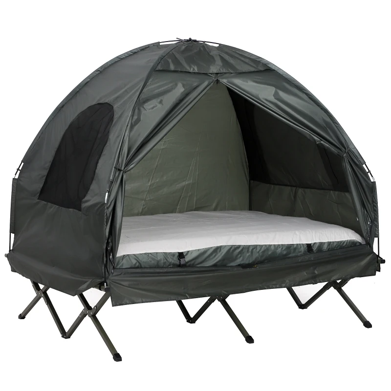 Open Box Outsunny Extra Large Compact Pop Up Portable Folding Outdoor Elevated All in One Camping Cot Tent Combo Set