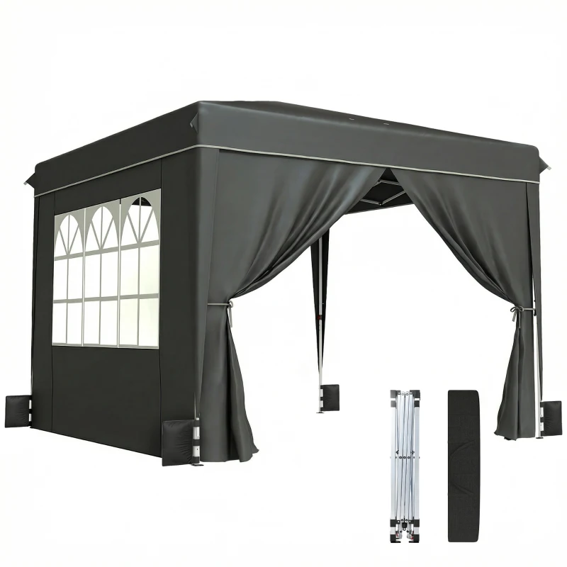 Outsunny 10 x 10 ft Pop Up Canopy Tent with Sidewalls, UPF50+ Outdoor Portable Instant Canopy Shelter with Carry Bag, Black(m-8)