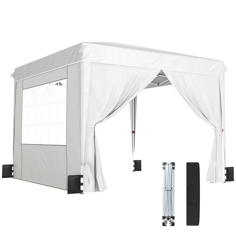 Outsunny 10 x 10 ft Pop Up Canopy Tent with Sidewalls, UPF50+ Outdoor Portable Instant Canopy Shelter with Carry Bag, White(m-8)