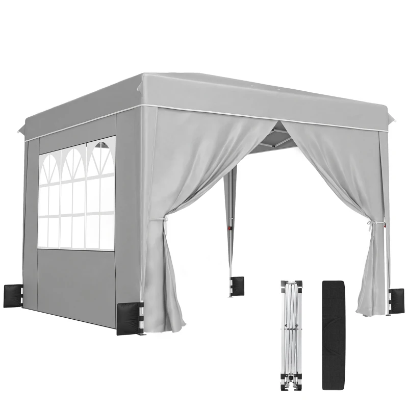 Outsunny 10 x 10 ft Pop Up Canopy Tent with Sidewalls, UPF50+ Outdoor Portable Instant Canopy Shelter with Carry Bag, Light Gray