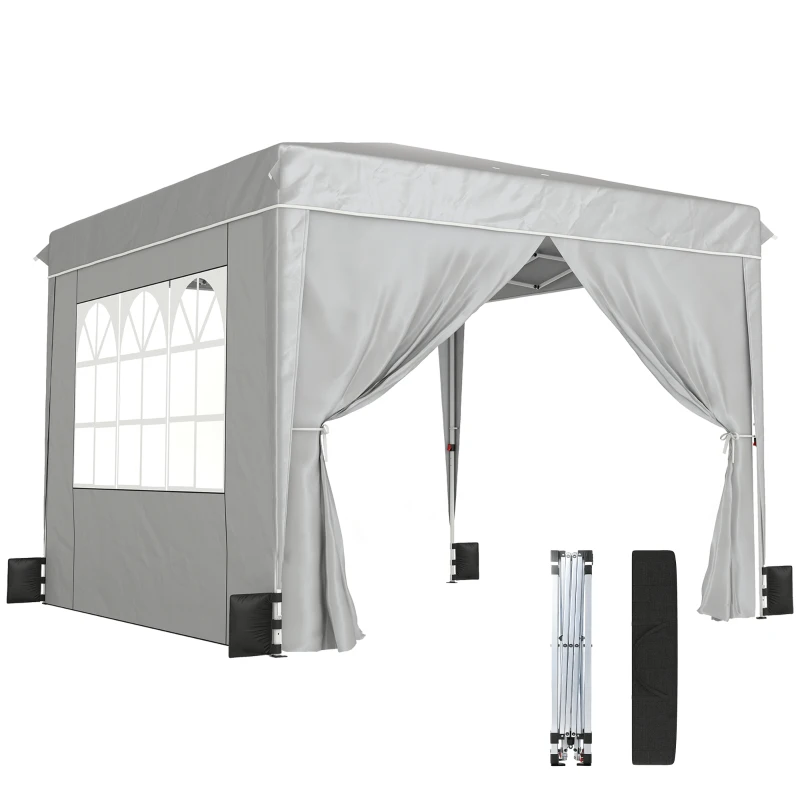 Outsunny 10 x 10 ft Pop Up Canopy Tent with Sidewalls, UPF50+ Outdoor Portable Instant Canopy Shelter with Carry Bag, Light Gray