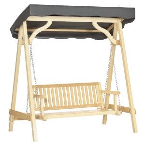 Outsunny 2 Seater Patio Swing Chair with Canopy and Hanging Chains, Wooden Porch Swing Glider, Outdoor Swing Loveseat, for Garden, Poolside, Backyard