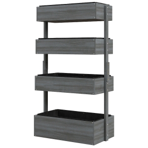 Outsunny 2 Tier Trellis Planter, Wooden Raised Garden Bed, Gray
