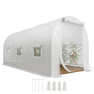 Outsunny Walk In Tunnel Greenhouse, Portable Outdoor Plant House with Roll Up Doors