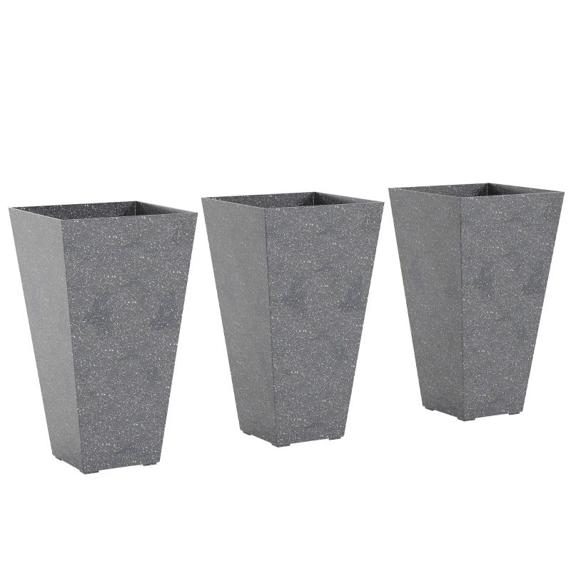 Outsunny 28" Tall Planters, Set of 3 Plastic Flower Pots with Marble Finish and Drainage Holes, Stackable Taper Planters, Gray