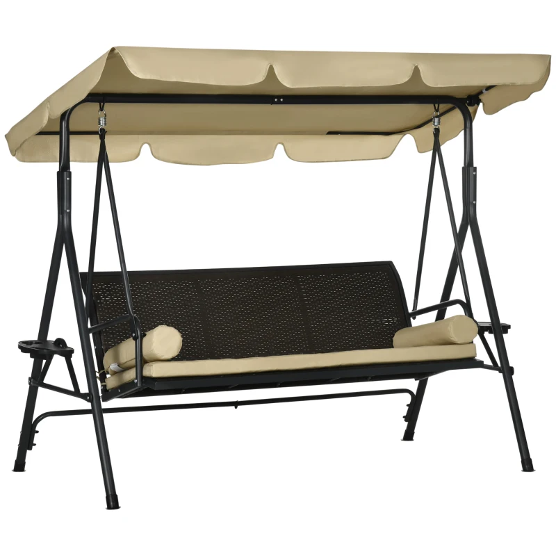 Outsunny 3-Seat Patio Swing Chair, Outdoor Canopy Swing Glider with Removable Cushion, Pillows, Adjustable Shade, and Rattan Seat, for Porch, Garden, Poolside, Backyard