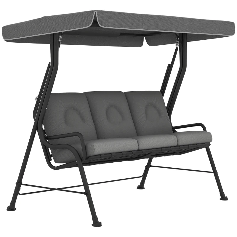 Outsunny 3-Seat Patio Swing Chair, Outdoor Swing Glider with Adjustable Canopy, Removable Thicken Cushion, and Weather Resistant Steel Frame, for Garden, Poolside, Backyard, Gray