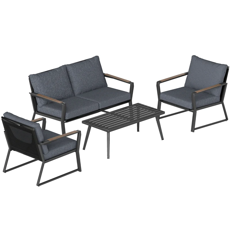Outsunny 4 Piece Patio Furniture Set, Aluminum Conversation Set, Outdoor Garden Sofa Set with Armchairs, Loveseat, Center Coffee Table and Cushions, Dark Grey