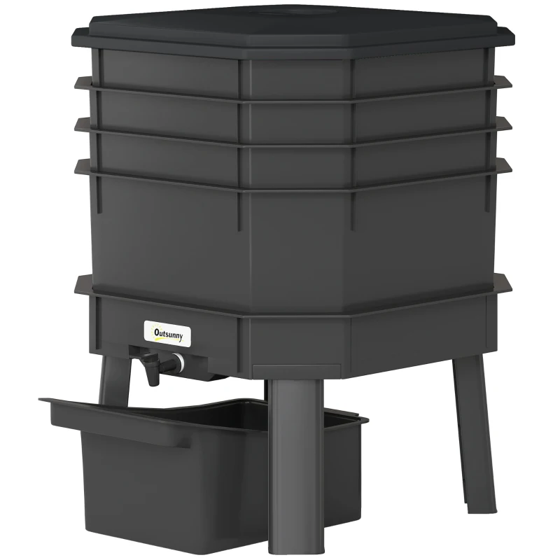Outsunny 4-Tray Worm Composter Bin, 7.4 Gal Outdoor & Indoor Worm Composter for Recycling Food Waste, Black