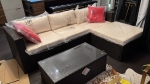 Outsunny 5-Piece Patio Furniture Set with Cushions, Outdoor PE Rattan Wicker Sofa Set, Sectional Furniture with Pillows, Glass Coffee Table for Garden, Backyard, Brown/Cream White