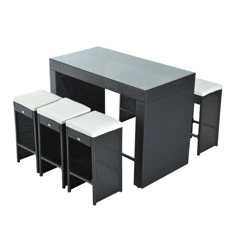 Outsunny 7 Piece Outdoor Patio Rattan Wicker Bar Stool Dining Table Set