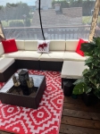 Outsunny 7 Piece Outdoor Patio Furniture Set, PE Rattan Wicker Sectional Sofa Set with Couch Cushions, Throw Pillows and Coffee Table, Orange, White