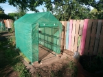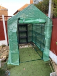 Outsunny 7' x 5' x 6.5' Walk-in Greenhouse, PE Cover, 2-Tier Shelves, Steel Frame Hot house, Roll-Up Zipper Door for Flowers, Vegetables, Saplings, Tropical Plants, Green