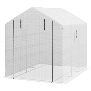 Outsunny 7' x 5' x 6' Walk-in Greenhouse for Outdoors with Mesh Door and Windows, 18 Shelf Hot House with Trellis, Plant Labels, UV Protective for Growing Flowers, Herbs, Vegetables, Saplings, Green