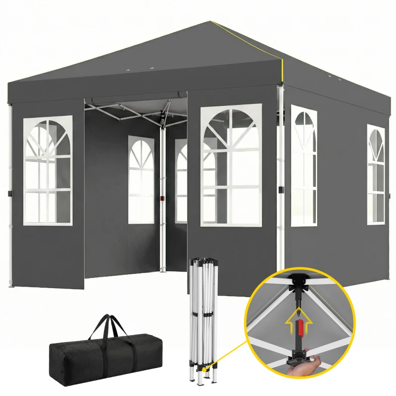 Outsunny 9.6 x 9.6 ft Pop Up Canopy Tent with Sidewalls, One Push Setup, UPF50+ Portable Instant Canopy Shelter, Dark Gray
