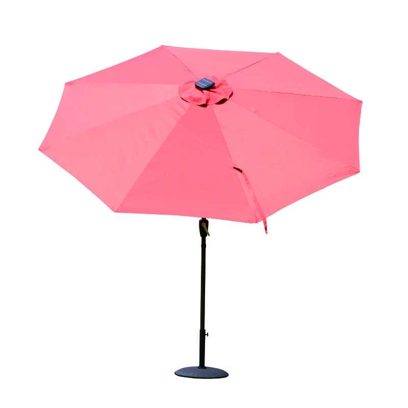 Outsunny 9’ Solar LED Market Patio Umbrella with Bluetooth Speaker – Wine Red