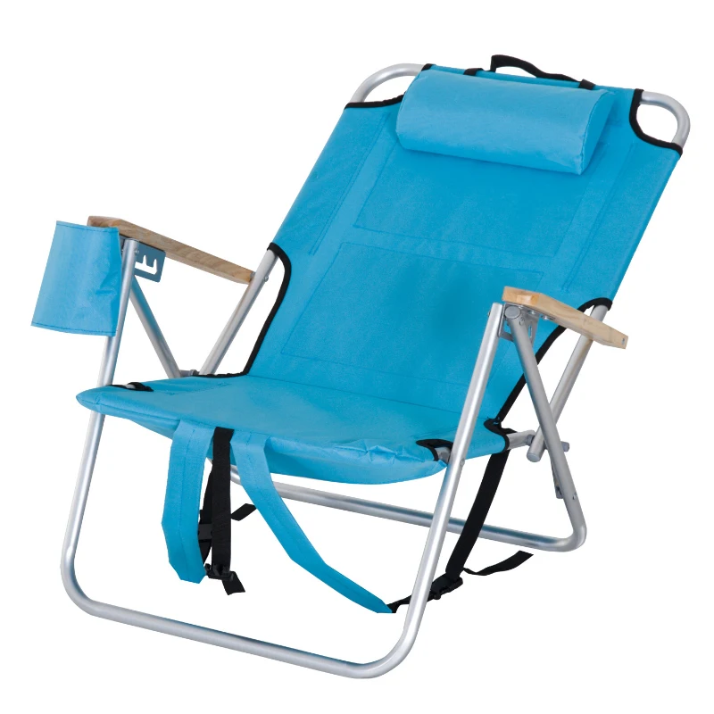 Outsunny Aluminum Outdoor Folding Reclining Camping Chair Backpack Portable Picnic Seat w/ Headrest And Cup Holder - Blue