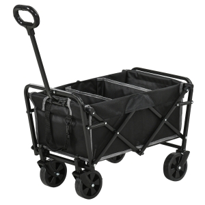 Outsunny Collapsible Wagon with Adjustable Handle, Heavy Duty Folding Garden Carts with All-Terrain Wheels, for Beach, Sports, Shopping, Camping, Groceries