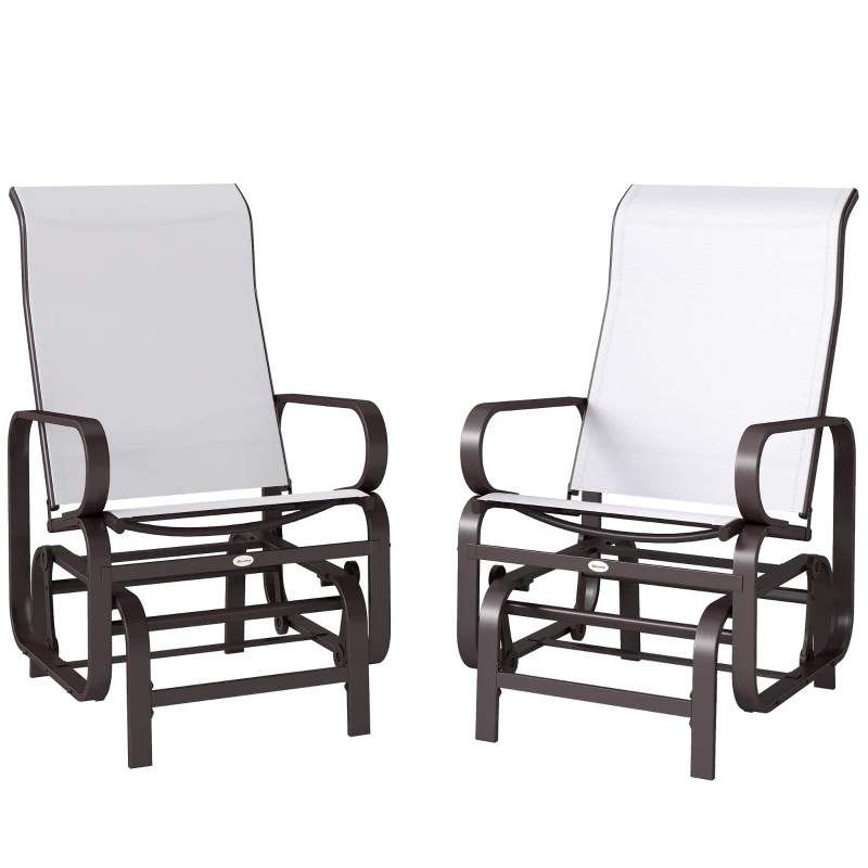 Outsunny Gliding Lounger Chair Set of 2, Single Rockers with Lightweight Metal & Mesh Construction, Beige