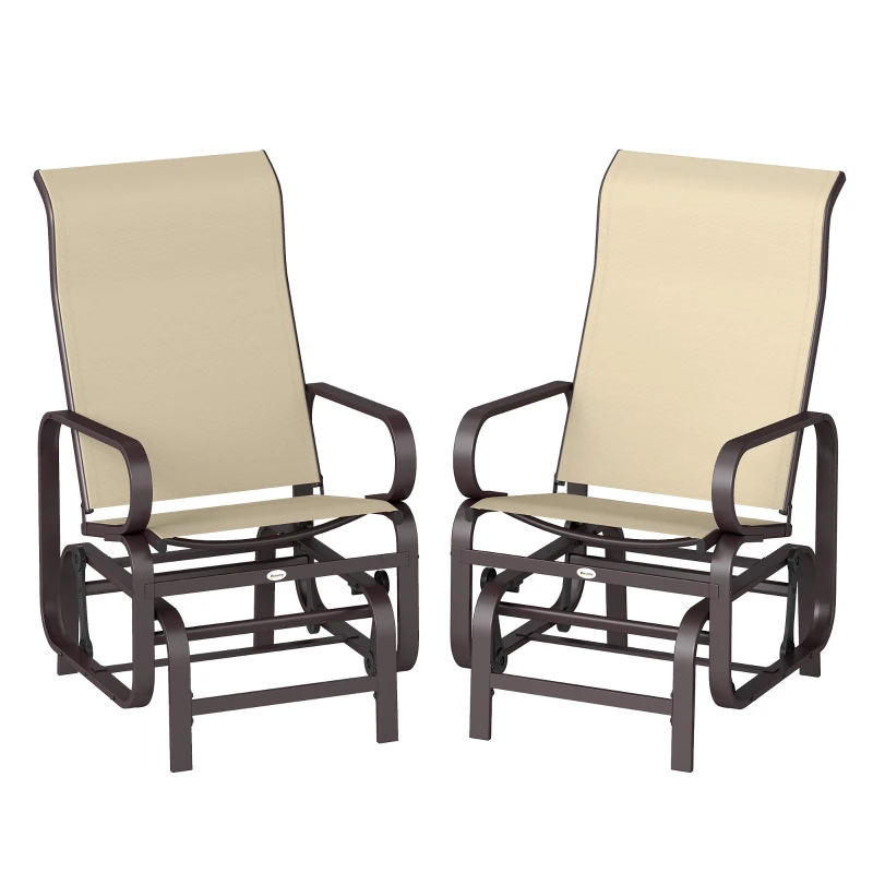 Outsunny Gliding Lounger Chair Set of 2, Single Rockers with Lightweight Metal & Mesh Construction, Khaki