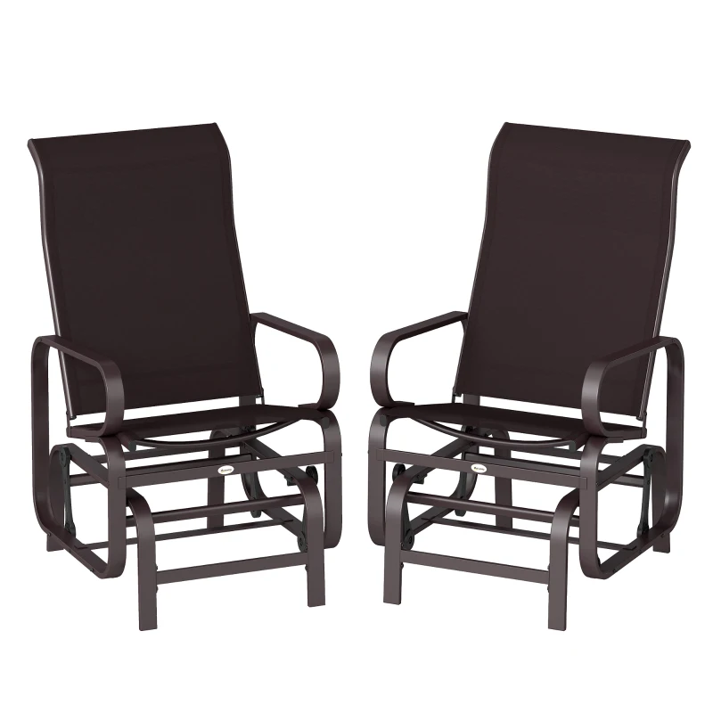 Outsunny Gliding Lounger Chair Set of 2, Single Rockers with Lightweight Metal & Mesh Construction, Brown