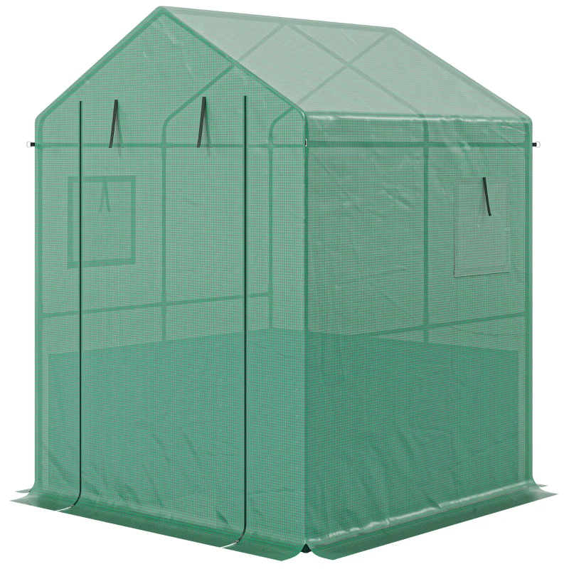 Outsunny Greenhouse with Raised Garden Bed, Galvanized Steel Outdoor Greenhouse with Roll Up Door, 56" x 56" x 75", Green
