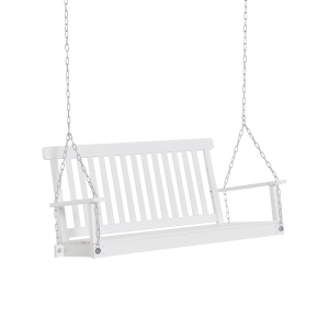 Outsunny Porch Swing with Chains and Cupholders, 2 Person Wooden Patio Swing Chair, 440 lbs. Weight Capacity, for Garden, Poolside, Backyard, White