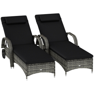 Outsunny Outdoor Chaise Lounge Chair Set of 2, 5-Level Adjustable Folding Pool Lounge Chairs with Cushions, Black/Gray