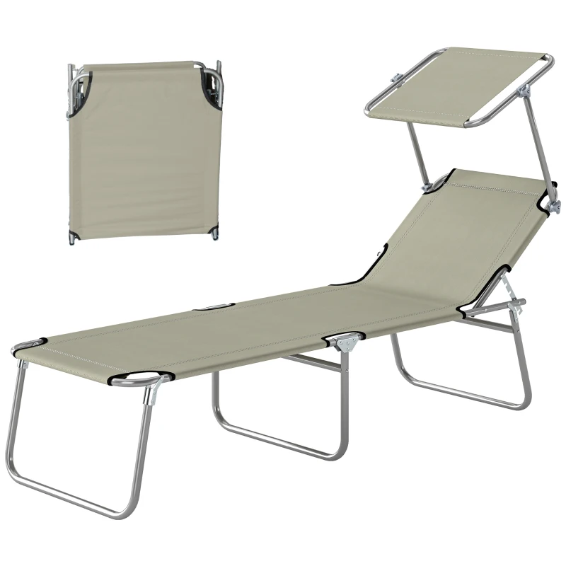 Outsunny Outdoor Pool Chaise Lounge Chair, Folding Tanning Chair with Sun Shade, Cream White