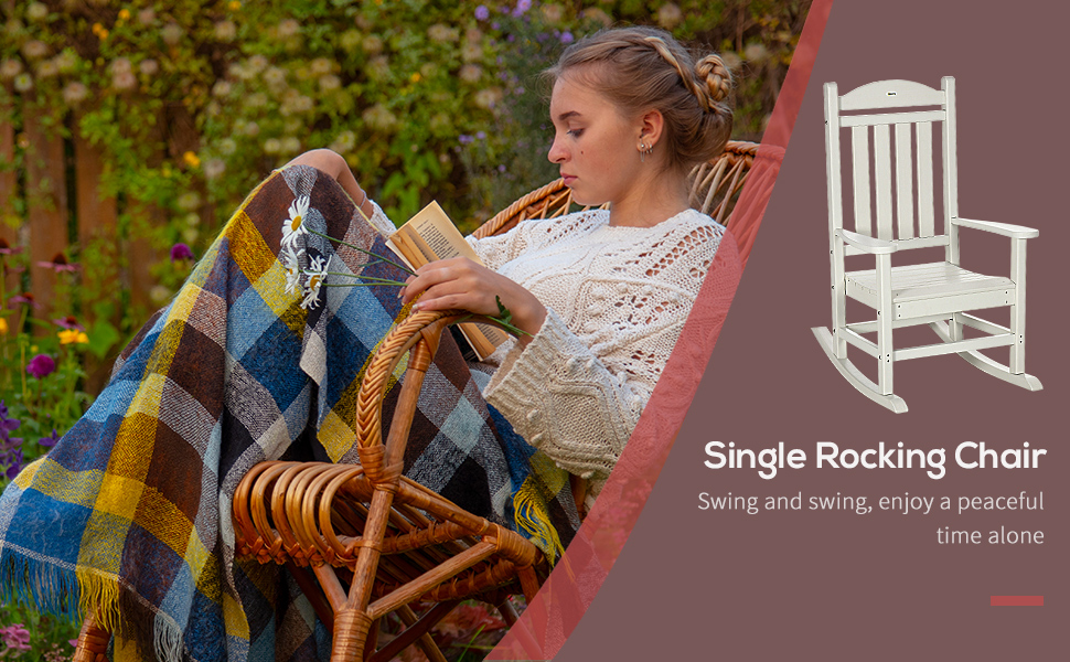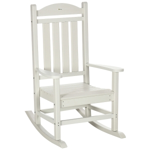 Outsunny Outdoor Rocking Chair, All Weather-Resistant HDPE Rocking Patio Chairs with Rustic High Back, Armrests, Oversized Seat and Slatted Backrest, 350lbs Weight Capacity, White