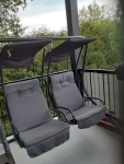 Outsunny Patio Swing Chair with 2 Separate Seats, Outdoor Swing Glider with Removable Canopy and Cup Holders, for Porch, Garden, Poolside, Backyard, Gray
