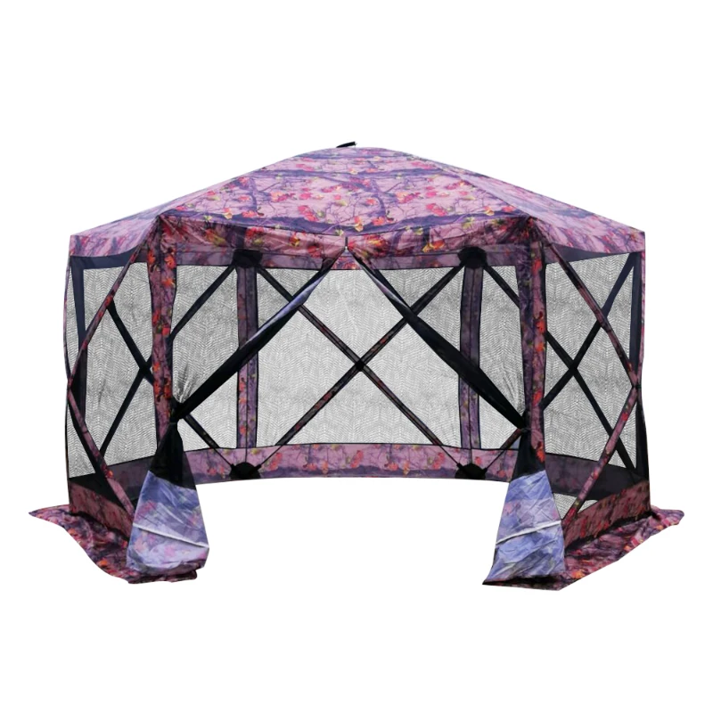 Outsunny Outsunny 12" x 12" 6-Sided Pop Up Portable Hexagonal Hub Gazebo Flower Pattern - Flower Pattern