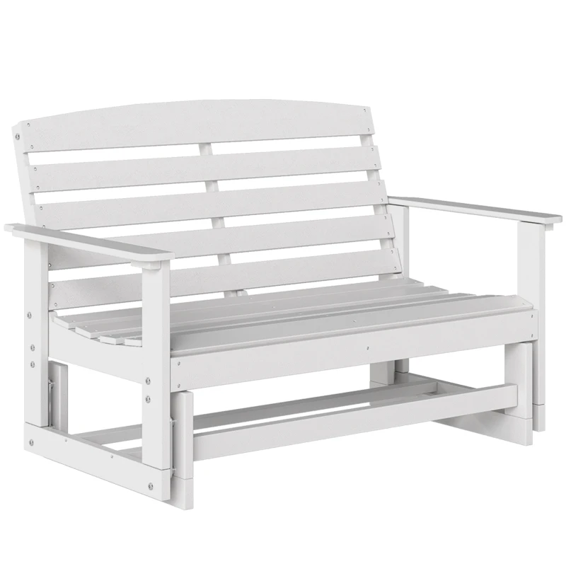 Outsunny Patio Glider Bench w/ HDPE Slatted Double Rocking Chair, White