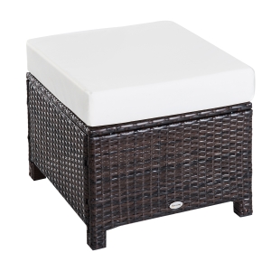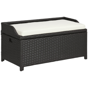 Outsunny 34 Gallon Outdoor Wicker Storage Bench Deck Box, PE Rattan Patio Furniture Pool Storage Bin Container with Interior Waterproof Cloth Bag and Comfortable Cushion, Cream White