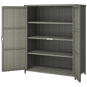 Outsunny Rattan Wicker Outdoor Storage Cabinet with 4 Shelves and 2 Doors for Garden Pool Towel Storage, Dark Gray