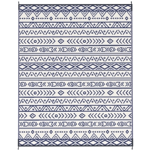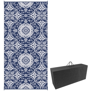 Outsunny Outdoor Rug for Patio, 9' x 12' Waterproof Large Mat, Reversible Plastic Straw Rug for Decor, Portable Outside RV Camping Area Carpet Mat for Backyard Porch Deck Picnic, Blue & White Floral