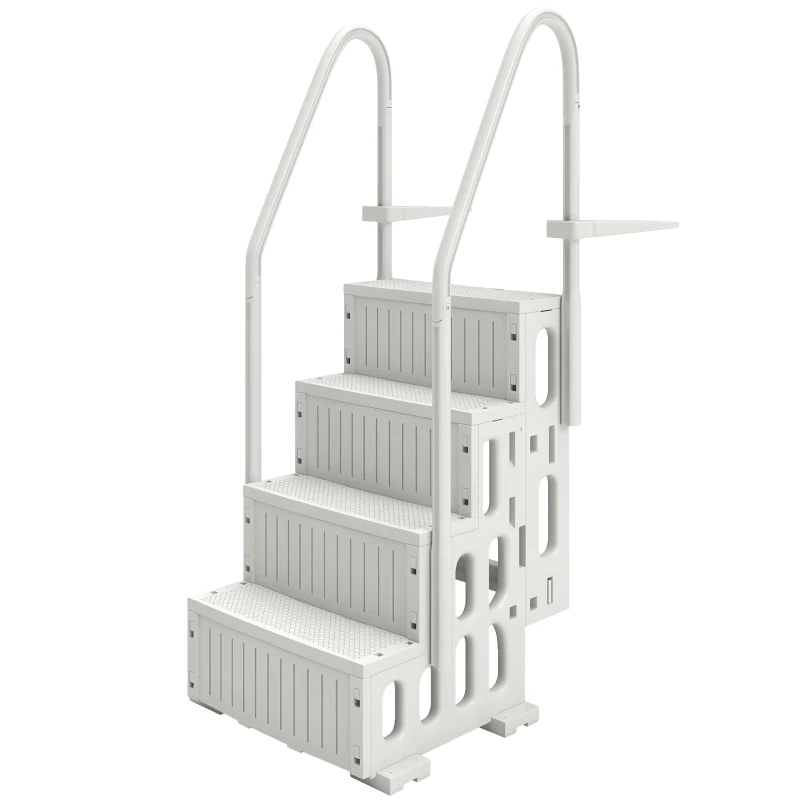 Outsunny Swimming Pool Ladder Adjustable Height for Above Ground Pool Steps with Dual Handrails White