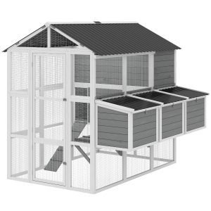 PawHut 147" Extra Large Chicken Coop, Wooden Hen House for 8-10 Hens, Outdoor Chicken House Poultry Hutch with Run, Gray