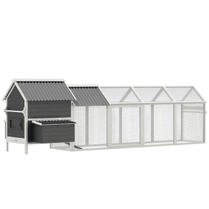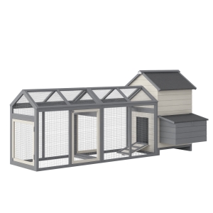 PawHut 162" Large Chicken Coop Wooden for 6-8 Chickens with Handles, Outdoor Chicken Cage Hen House with 2 Nesting Boxes, Water-resistant Roof, Removable Tray, Ramp, Storm Gray