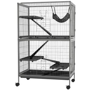 PawHut 50" H Rolling Small Animal Cage with Hammock, Ferret Cage, Chinchilla Cage, Pet Habitat with 4 Doors, Removable Tray