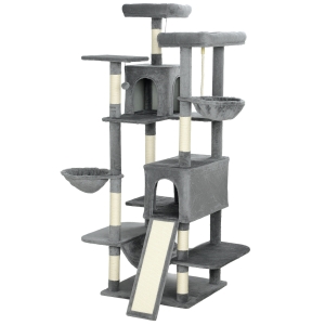 PawHut 69" Cat Tree, Multi-Level Cat Tower with 2 Condos and 3 Hammocks, 8 Scratching Posts, for Multiple Cats, Dark Gray