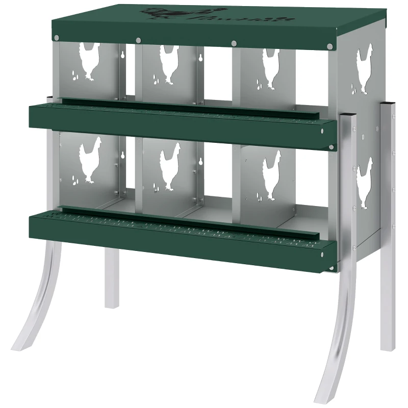 PawHut Chicken Nesting Boxes, 6 Compartment Steel Nesting Boxes for Chickens, Wall Mount Egg Laying Boxes with Vented Holes