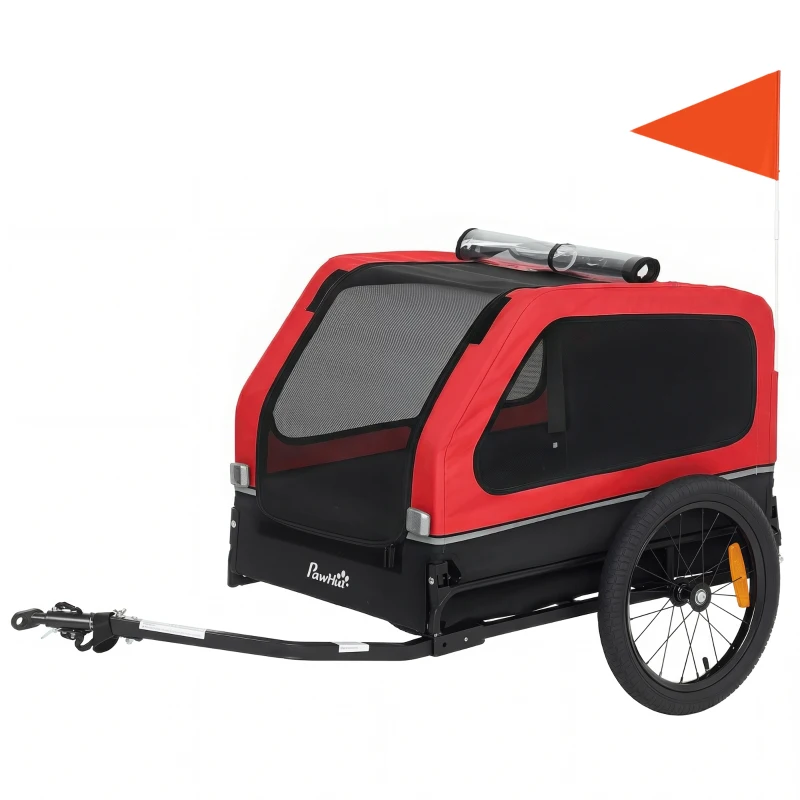PawHut Dog Bike Trailer for Small & Medium Dogs, Universal Bicycle Coupler, Flip-Down Ramp Tailgate, Red(m-2)