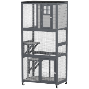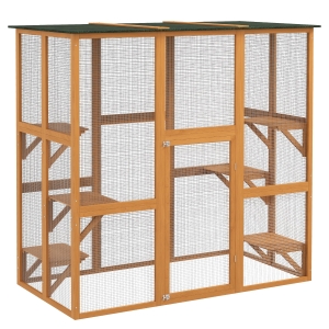 PawHut Outdoor Cat House Big Catio Wooden Feral Cat Shelter Enclosure with Large Spacious Interior, 6 High Ledges, Weather Protection Asphalt Roof, 71" L, Orange
